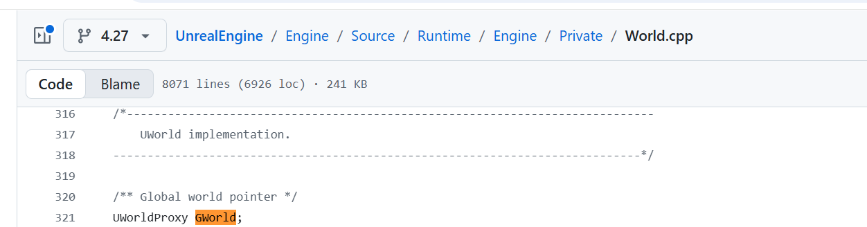 GWorld: UE 引擎中有一个全局变量